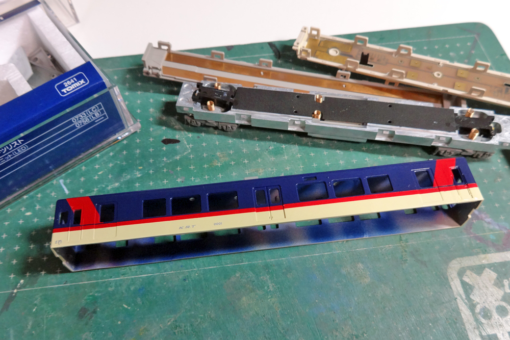 鹿島臨海鉄道キハ8000形を作る~その4(終) ▲新横浜「プラスポート」様にてさて、年始運転会に合わせ、懸念となっていた鹿島臨海キハ8000形がロールアウトしました。今回TOMIX樽見ハイモ330を種車にした理由こそ「前尾灯を生かす」ということ。単品の20m級動力に前後で分割したハイモ330のカバーを取り付けることで、基盤・カバー・ライトユニットの構成はハイモと全く同じに。光漏れ等々の心配なく、点灯化を図ることが出来ました。…写真を撮ることなく上回りを被せてしまったのが残念です。 つづきはこちら 旧ロットのキハ183のTN化 非常に今更感あふれる内容の加工なのですが…譲り受けてから熟成させていたTOMIX旧ロットのキハ183系1550番代を編成にするため、一部の車両へTNカプラーを組み込んでみました。 ▲旧製品といっても充分に精悍な顔つきじゃないですか? つづきはこちら 711系0番代で空港へ 新年明けましておめでとうございます。本年もどうぞよろしくお願い致します。 ▲2016年末、忘年運転会での一コマさて、2016年内最後の加工となったのは宮沢模型の711系0番代でした。購入してから6~7年放置しっ放しだったのですが、「赤」テーマ運転会がいいタイミングとばかりに整備を行いました。 つづきはこちら 2016年振り返り 2016年もあと少し。今年は本業の方が忙しくあっという間に時が経ち、一瞬で1年が終わってしまいました。都度運転会に合わせて新ネタの製作はしていたものの、あまり更新できなかったのが心残りです。なんか毎年書いている気はしますが(苦笑せっかくなので今年作った車両を振り返ってみようかと思います。 つづきはこちら 留萌本線の一部廃止と石勝線運転再開 留萌本線の増毛~留萌間廃止から早くも10日。記事も書こう書こうと思っていたのに、驚くほどのスピードで時が経ってしまいますね。 ▲廃止の当日、「増毛駅」の名が東海道線車内のニュースでも。 つづきはこちら 北陸旅行~2016秋 思い立ったらなんとやら、ということで週末に金曜半休をくっ付けて2.5連休を作り出し、北陸旅行に行ってきました。所用等、色々理由づけはありますが(笑 ▲改札を出てすぐの所に吊り下げられている巨大垂れ幕。 これ、タペストリーで家に飾れるサイズとかで欲しくなりませんか? つづきはこちら 鹿島臨海鉄道キハ8000形を作る~その3 鹿島臨海8000形、前回までに車両工作が完了しましたので一気に塗装していきます。 ▲既存の6000形と異なり、かなり派手になったイメージの塗色。 つづきはこちら 鹿島臨海鉄道キハ8000形を作る~その2 さて、前回に引き続き鹿島臨海キハ8000のお話。 樽見鉄道ハイモ330と先頭部、関東鉄道キハ2100の中央部を接合した結果、屋根上に設けられた排気管が無くなってしまいました。屋上機器が少ない気動車において、排気管は切り捨てることの出来ないアクセントです。かといって他の車両から持ってくるわけには行きませんので、プラ材から作っていくことにします。 つづきはこちら