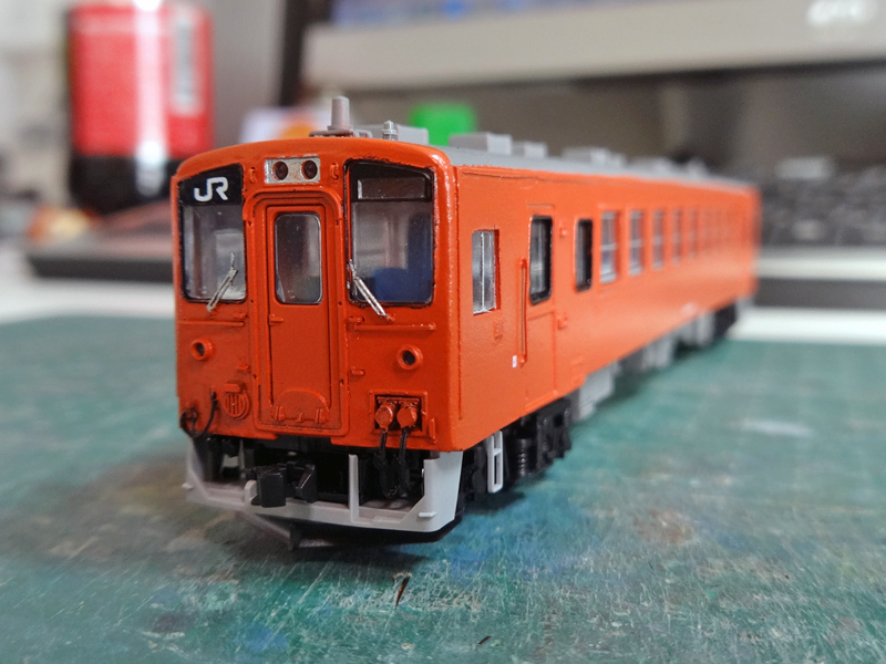 メインの車両の手すり等を金属パーツとしたもんですから、相方となるキハ47についても手すり植え替え、ワイパー取り付け、前面ガラス交換を行っています。