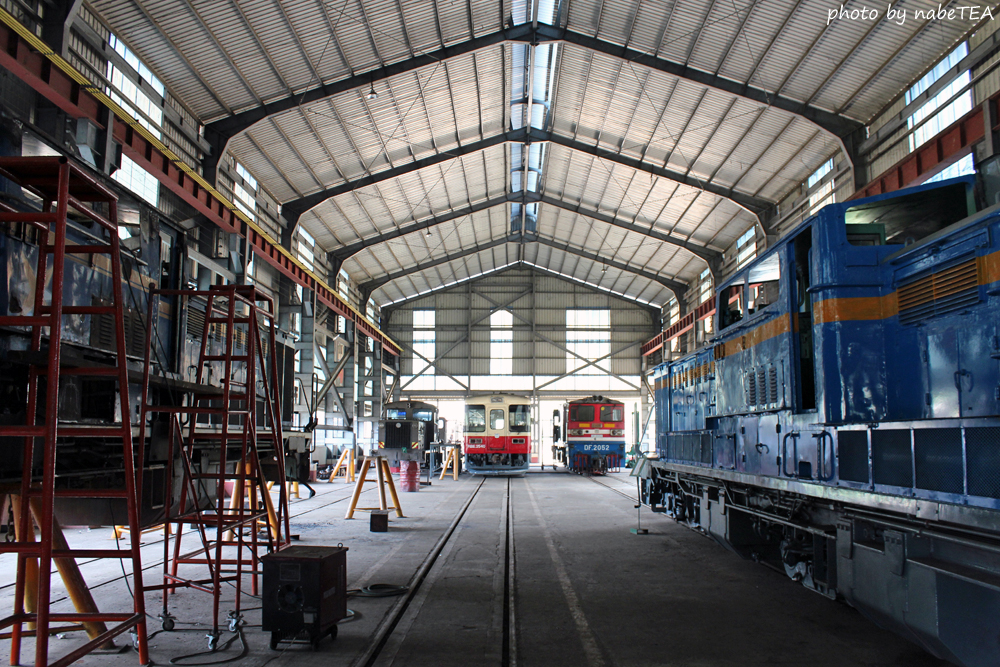 Inseinの工場では機関車の改造や全検が行われているようで、JR北海道から譲渡された北斗星カラーの2台は"ミャンマー化"改造が行われている真っ最中でした。
