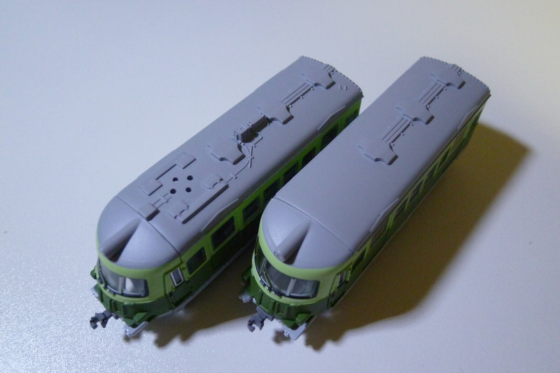 屋根を見てみると電動車と付随車で屋根が作り分けられています。
