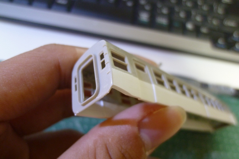 こうした車体キットを作る際のセオリーは「妻と車体・先頭と車体」のようにL字を2つ作ってそれをロの字型に、そこに屋根をはめる」という流れ。