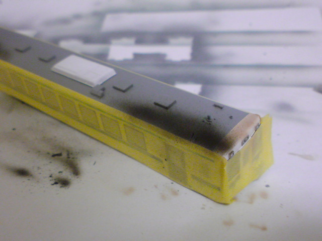 屋根上などは車体をマスキングすればすぐに出来ますから手も付けやすいのですが、床下に関しては集電板含め台車をフル分解したり、動力をマスキングしたり…と結構な手間がかかってしまいます。