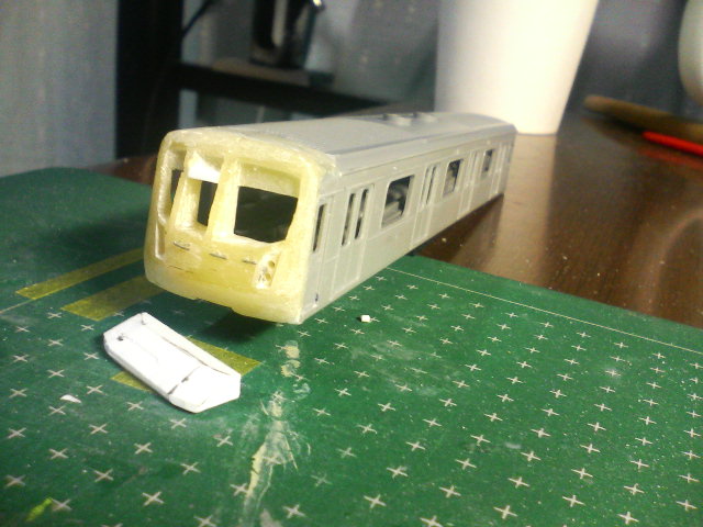 東急N6000系のスカートでも作るべ、とエバグリのプラ棒を重ねてザクザク削っていたのですが。