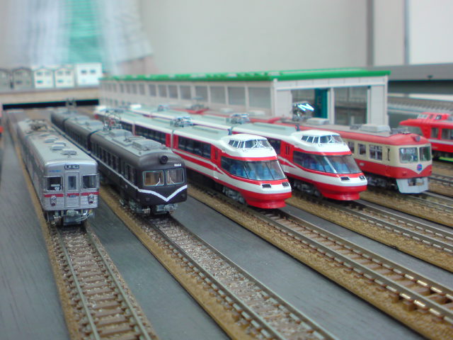 2000系A・D両編成の復刻塗装ver.と1000系ゆけむり(元・小田急HiSE)と3500系(元・営団3000系)の3形式5本を並べてみました。