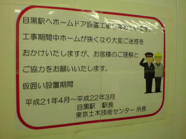 ↑の写真のような説明書きが貼り付けられ、目黒駅にホームドアが設置されることが明記されています。