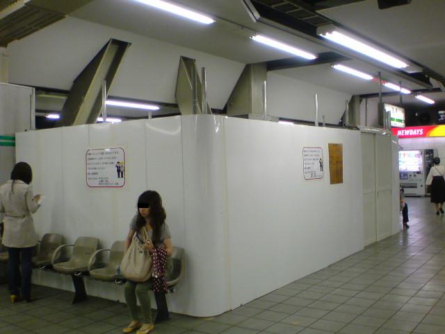 さて、数日ほど前からなのですが…目黒駅のホーム五反田寄り(東急連絡口へのエスカレーターとNEWDAYSの間)に白い壁の工事用囲いが設置されました。