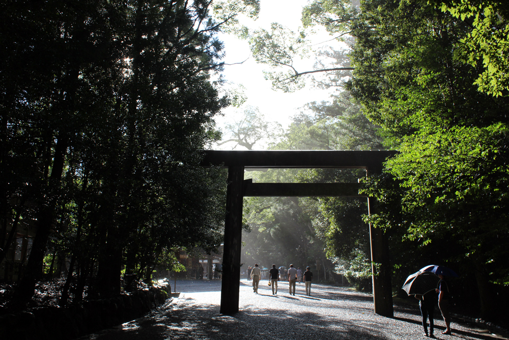 降ったりやんだりの雨でしたが、木漏れ日と相まってものすごく神々しい風景。