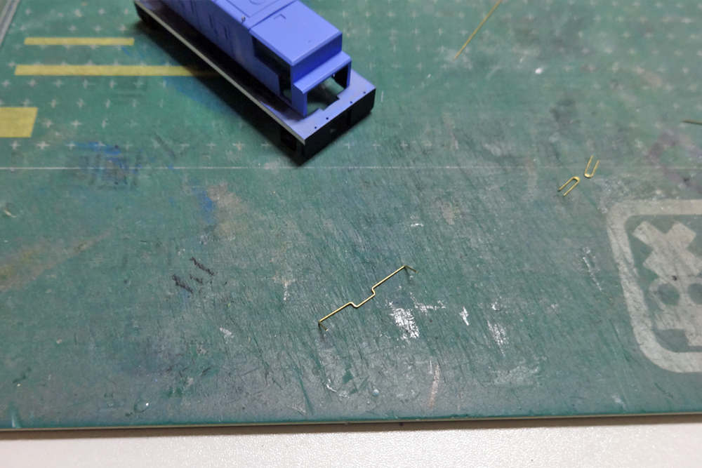 そんな訳でφ0.3mmの真鍮線を実物合わせで曲げ、それっぽいものを製作してみました。
