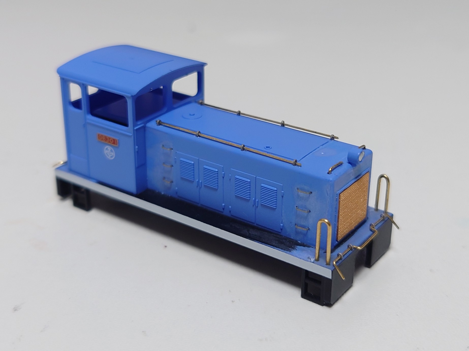ノス鉄DLはボンネット部分にナンバープレートがあるため、これを避けたL字型のラジエーターグリルパーツも封入されているのですが、今回はナンバープレートを全て削り真四角のラジエーターグリルをはめ込み、ノス鉄とパッと見の印象が変わるよう意識してみました。