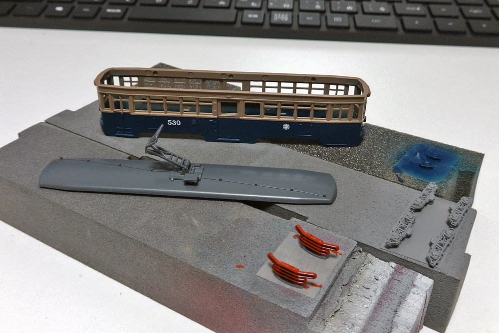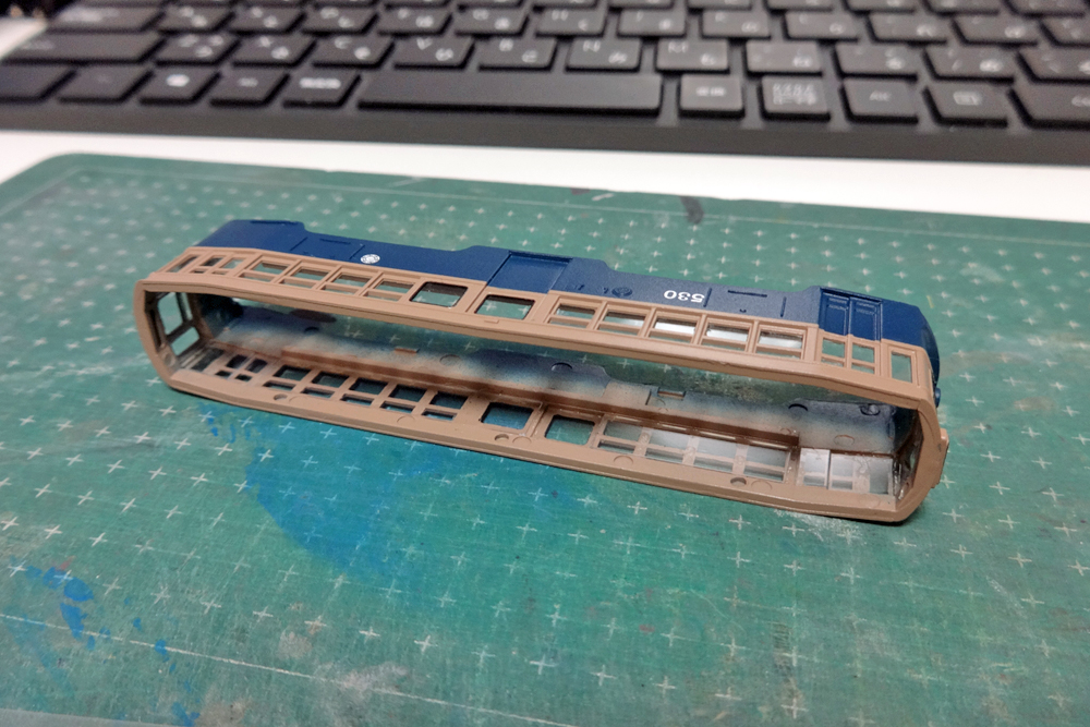 というわけで後は屋根・排障器・台車枠等をそれぞれ別に塗装。