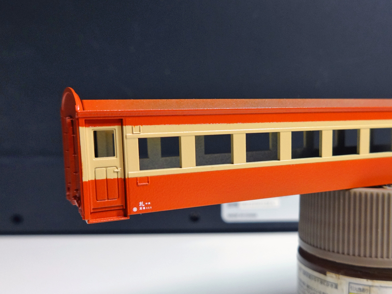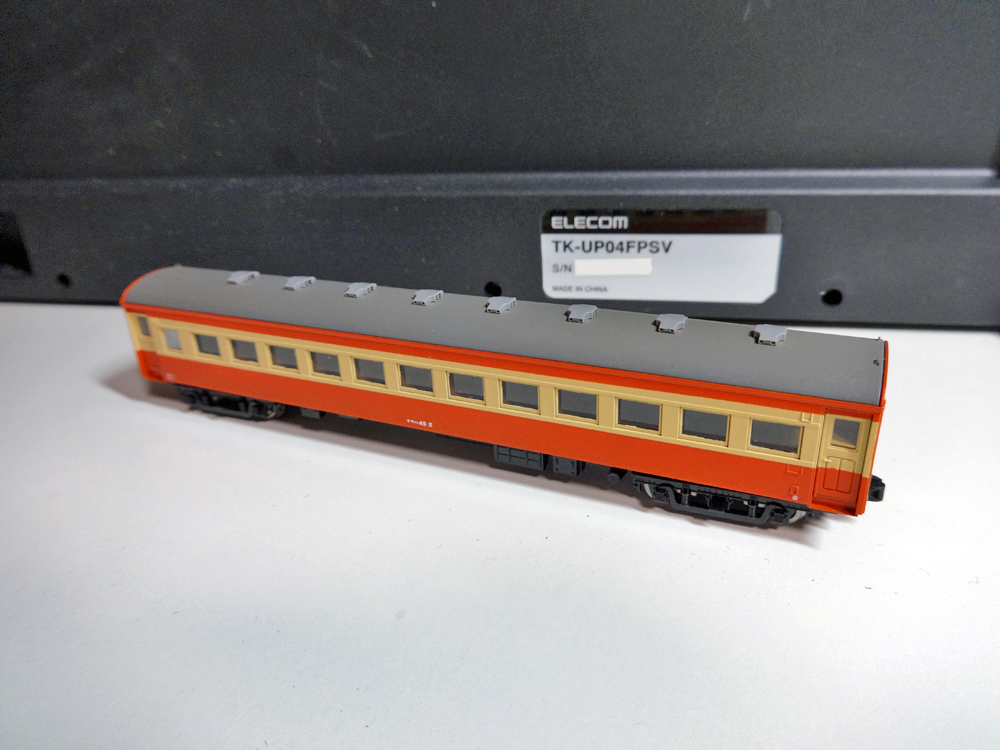「どう見ても客車なのに気動車色を纏っていて、かつ気動車と連結できる」のイメージは崩すことなく、完成となりました。