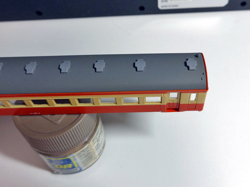 運転台のない妻面側は元のモールドをほとんど削り取ってスッキリと。