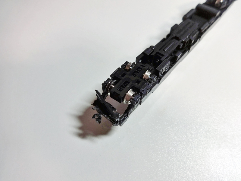 塗装後に先頭部にはブレーキ管と複線用スノープロウを接着。