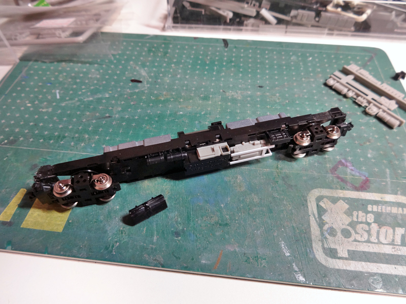 TOMIXのキハ20系列の床下機器を持ってくるのが一番似せる方法ではあるのですが、予算的にさすがに厳しいですね。機会を見て置き換えらるようなら、検討してみましょう。