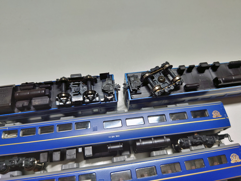※割と不精なので、スシ24同士の連結面間は台車マウントカプラーのままにしてあります。
