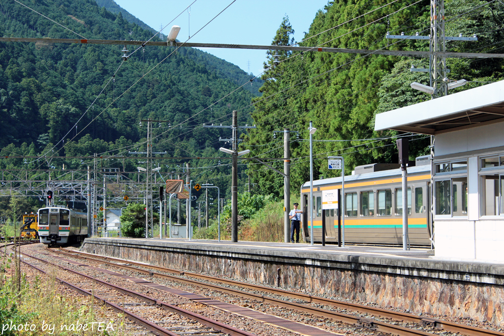 乗ってきた213系H6編成は上り列車との交換待ちのためしばし停車。