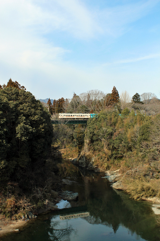 このあたりで切り上げしばらく北上、豊川を渡る鉄橋を渡る上り列車を撮影。