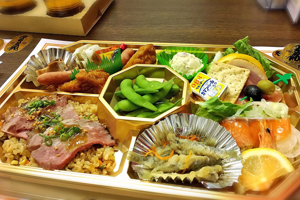 (種類が選べる)生ビール3杯と「銀座ライオン」のオードブル、お土産に当時新発売だった「華みやび」ロング缶1本がついてきました。あとは車内でのジャンケン大会による景品もありましたね。