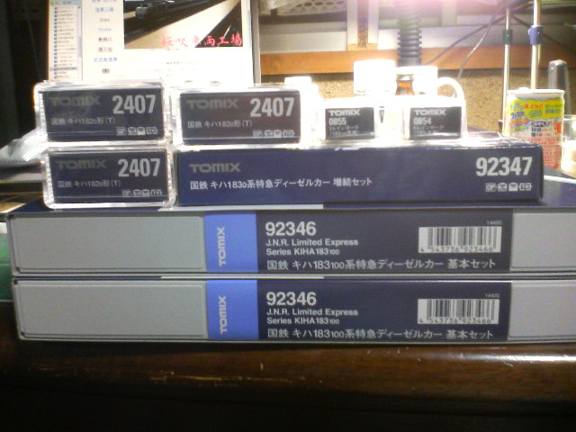 予約した100番代基本セット×2と、予約はしなかった増結セット×1と単品キハ182-0(T車)×3を購入してきました。