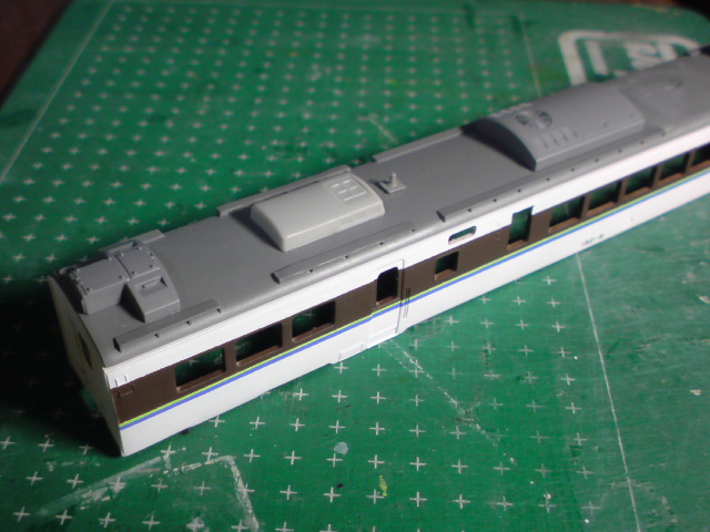 特急オホーツクに組み込むべく製作中のキロハ182形、バイトから帰宅後に屋根をいじりました。