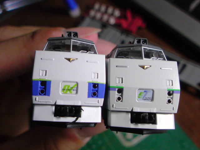 さらにキハ183形のスカートにTOMIXのEF63の余りジャンパー線を持ってきて装備してみました(写真は未加工のキハ183と比較)。