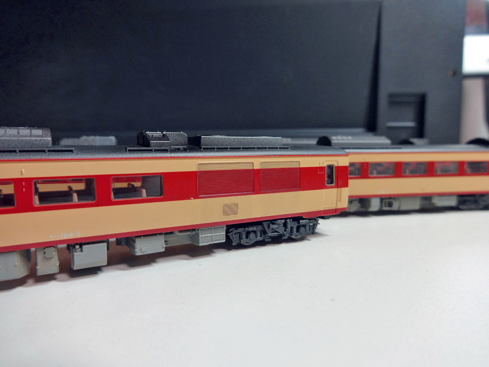 キハ183形やキハ184形は機器室のルーバーが大きく目立ちますので、やってあげると大分浮き立って見え、いい具合です。