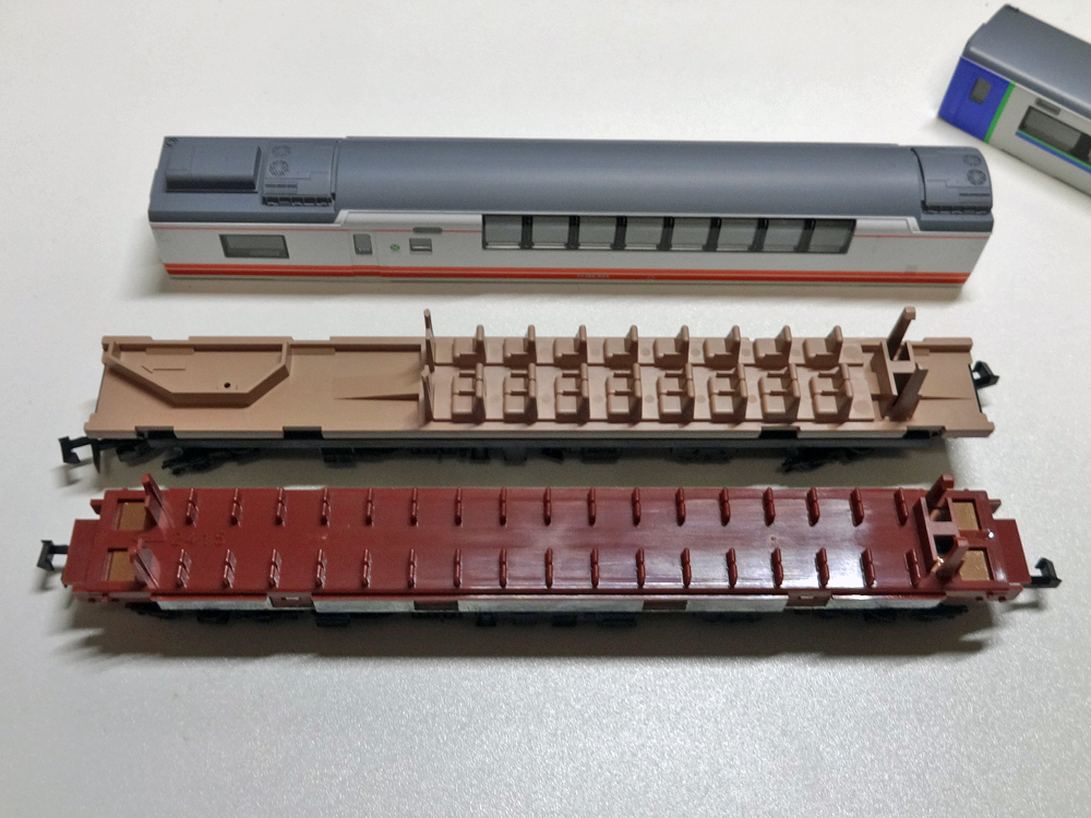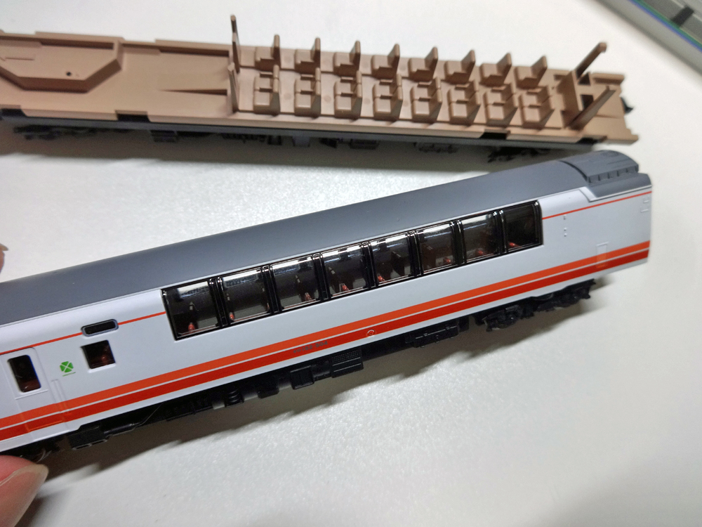キハ182(M)の床板をとりあえずそのままキロ182に嵌め込んでみましたが、さすがに普通車の座席割がハイデッカー部の窓から丸見えでは興ざめというもの。車体のはめ込みなどは全く問題がなさそうですので、内装工事を中心として進めていくこととなります。