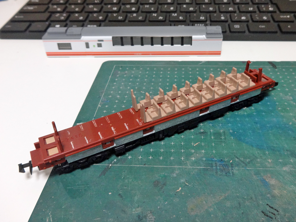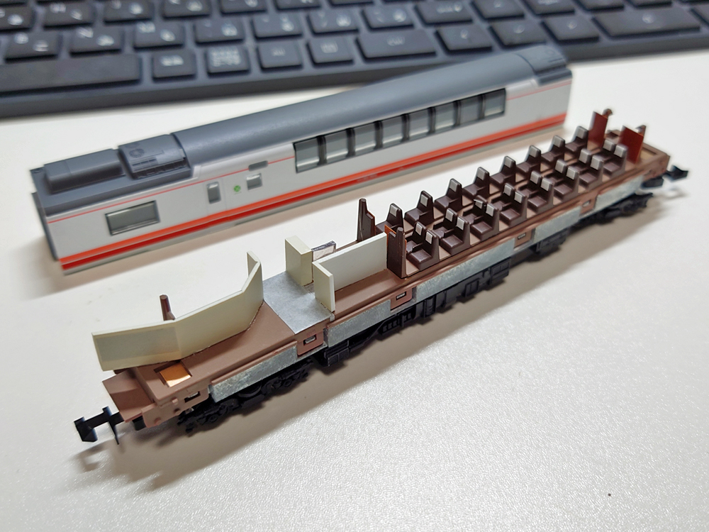 この角度だと設置した壁などを見えなくなってしまいますが、少なくとも取り付けなおした座席については製品のT車キロ182と比べても遜色ない見た目となりました。