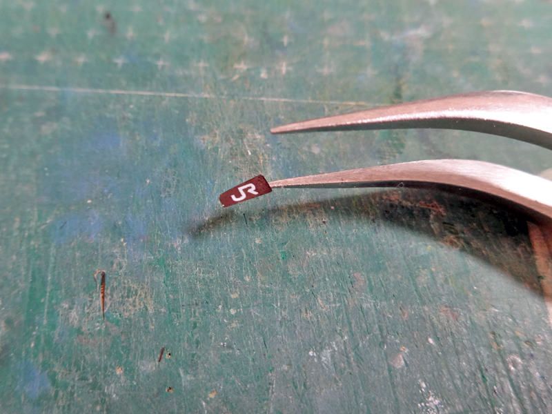 さらにキハ33の助士側窓上部にはJRマークがありますので、秘蔵のTOMIXJRマークインレタから適当なサイズのものを選択。