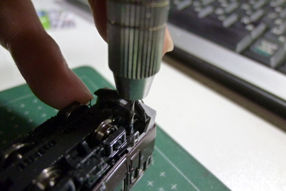 一度車体に嵌めてから位置を確定させ、ピンバイスで一気に穴を開けてしまいます。