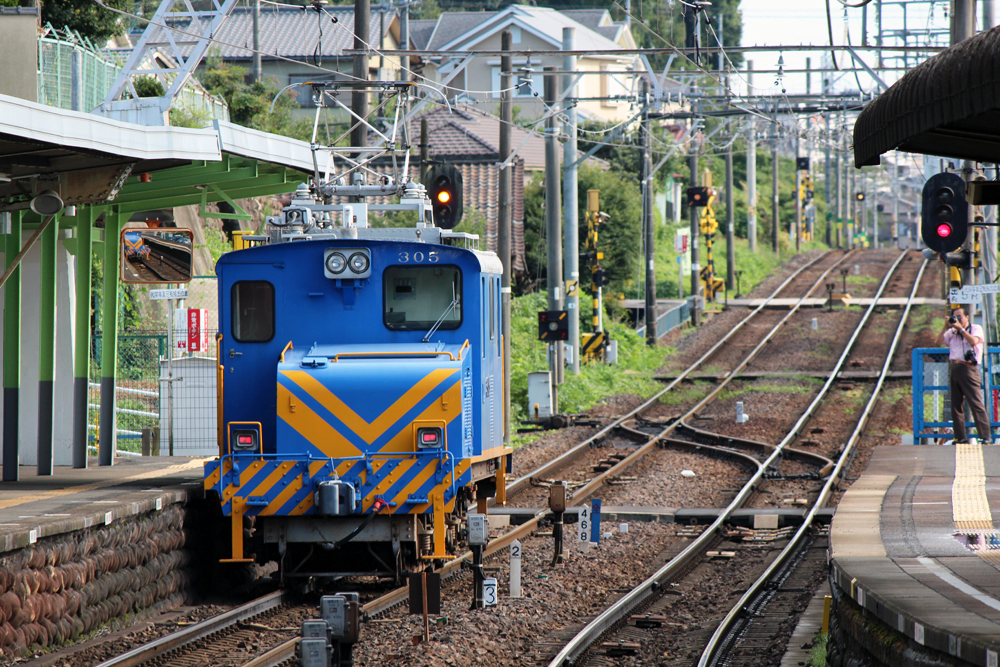 初めてちゃんとデキ300を見たのですが、古典的な私鉄電機の形状に四角い尾灯、というのはなんとも「私鉄らしい」姿です。