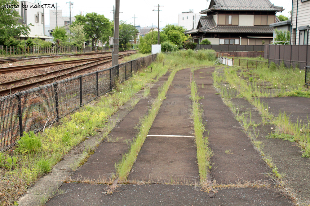 美濃町線全線が2005年に廃止されるまでの6年だけ使われた線ですが、このようにほぼ当時の姿で残っています。停止位置を示す白線まで残っているとは。