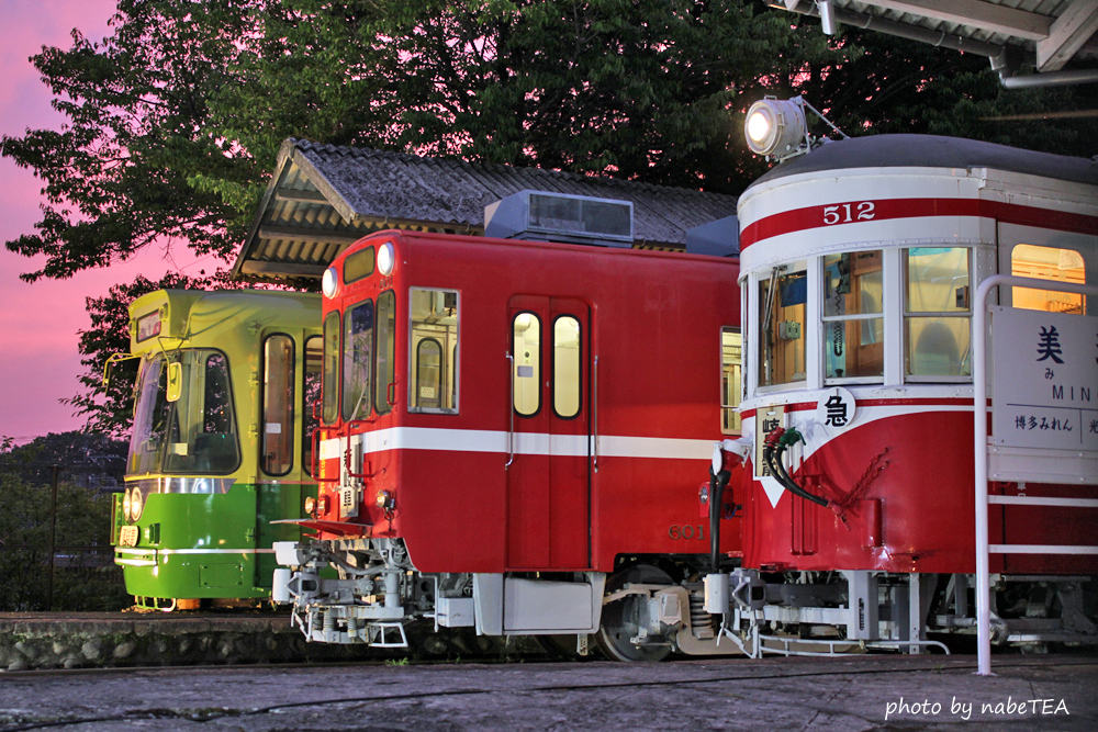 ライトアップされている事で車両が浮き上がり、なかなか巡り合う事の出来ない光景です。