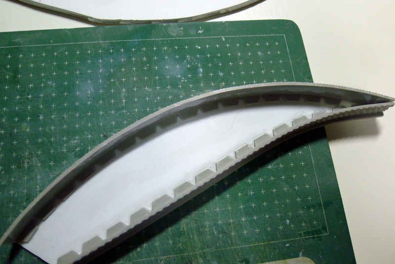 いつもの400番のペーパーではあまりにも時間がかかるため、曲線側などはカッターで大まかに切り落としてから100~200番ぐらいのペーパーで整えました。