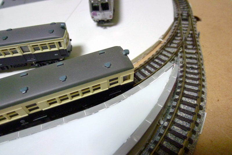 側面はなんとか真っすぐに戻ろうとするため、接着剤で強制的にホーム面に固定。