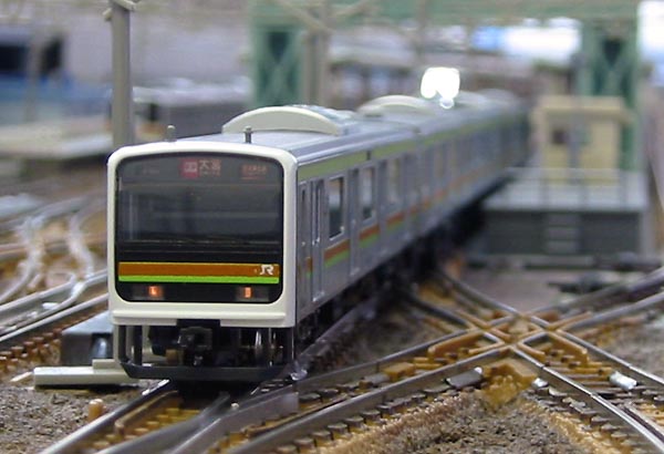209系3000番代、八高線色。0番代車4連を塗り替え、半自動ドアボタンを転写。よく見ると、幕が「快速 大宮」のまま^^;