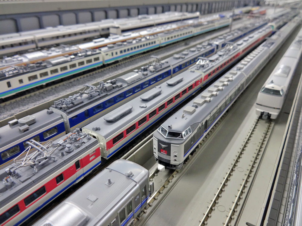 これだけ特急車が集まった運転会ですが、普通列車は521系ばかりで、455系や419系など国鉄から継承された普通車群がまったくいませんでした。実車に乗った頃には買わず、今になってほしくなっても手に入らず…将来ハマりそうなものを想定して先買いしておくのも至難の業です(汗