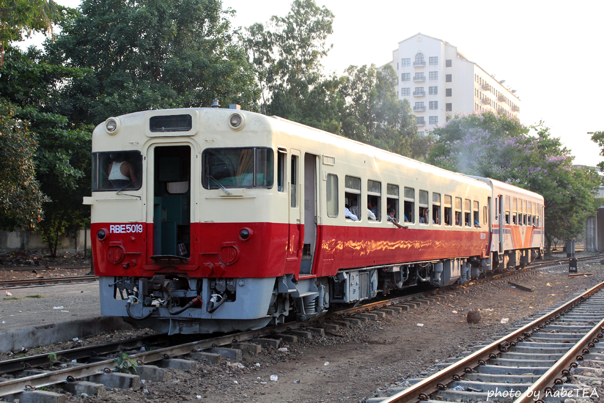 ▲Yangon~Computer Univ.運用に就くRBE2575(松浦MR-109)+RBE5019(JRキハ58-1514)