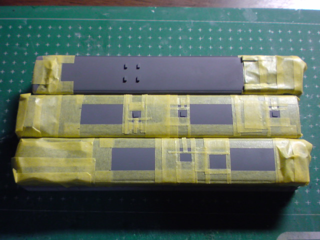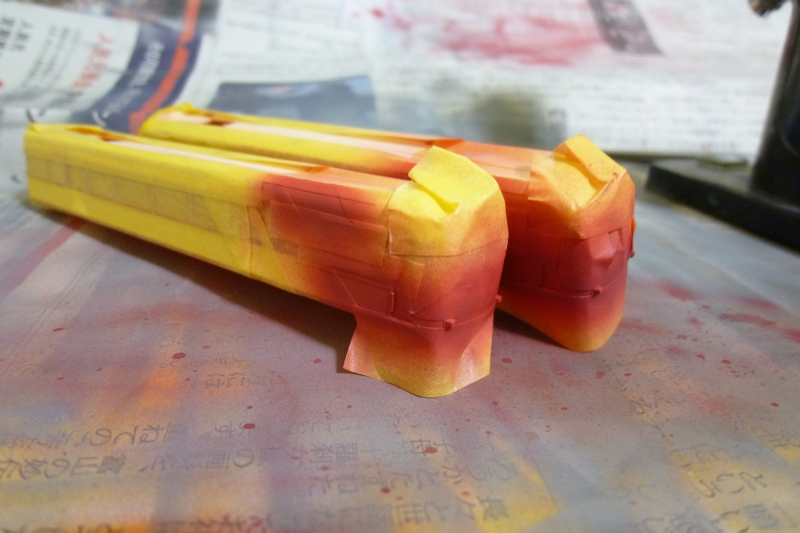 やはりマスキングが甘く扉部分で吹きこみがあったり、肩部分の細帯がだんだん太くなっていったりと要修正な感じに。。