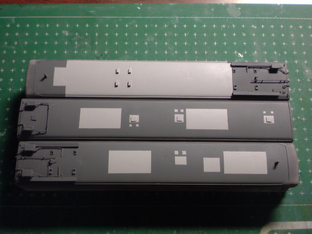 基本の屋根色はGM35番(ダークグレー)、冷房の載る部分やベンチレーターのあった「後から改造が加えられた部分」は白っぽいグレー(GM9番+Mr.COLOR GX1クールホワイトを1:2ぐらいで混ぜたもの)で塗装しました。