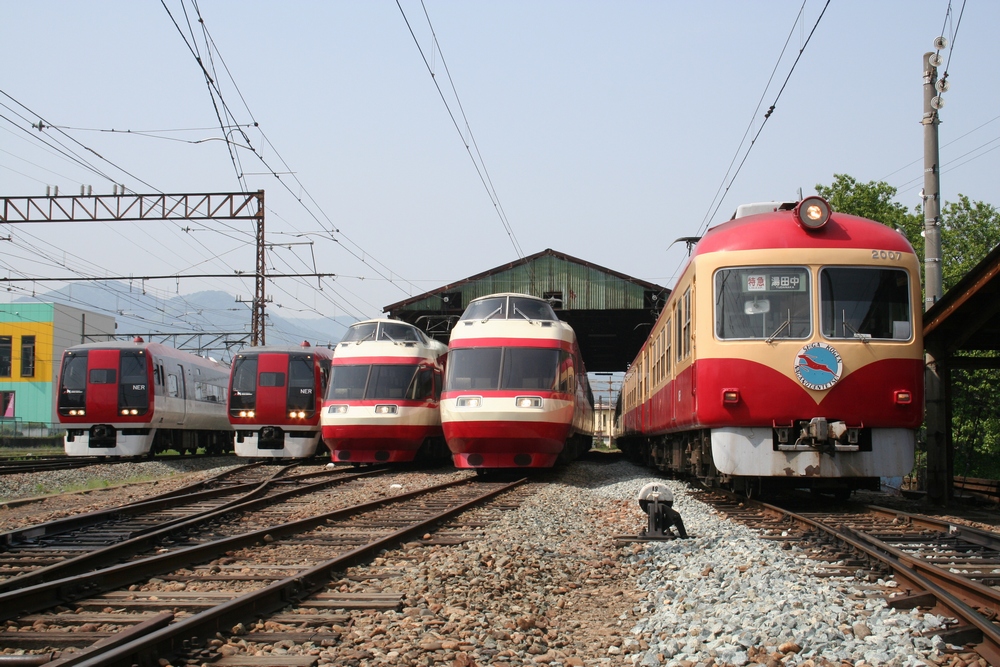 須坂車庫での撮影会では特急車4本を並べていただき、圧巻の並びでの撮影。