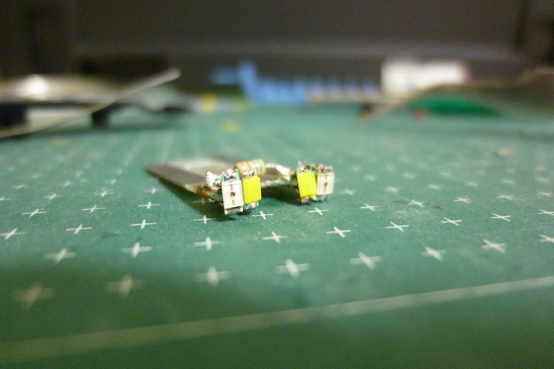 前照灯・尾灯それぞれ2つづつ付いていますので一度切り離してから今回購入してきたチップLEDを取り付けました。