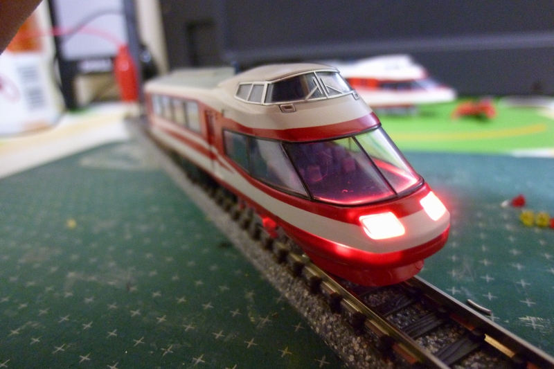 さっそく…ということでまずは前照灯の色合いが気になっていたTOMIXの「長野電鉄1000系ゆけむり」のLED交換を行いました。