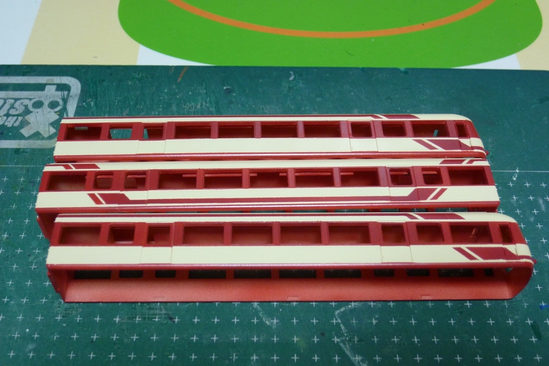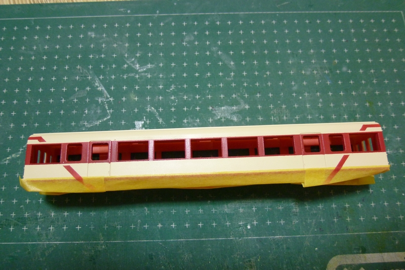 塗装を一回すべて落とした上でまずは車体色となるクリーム色を塗装。