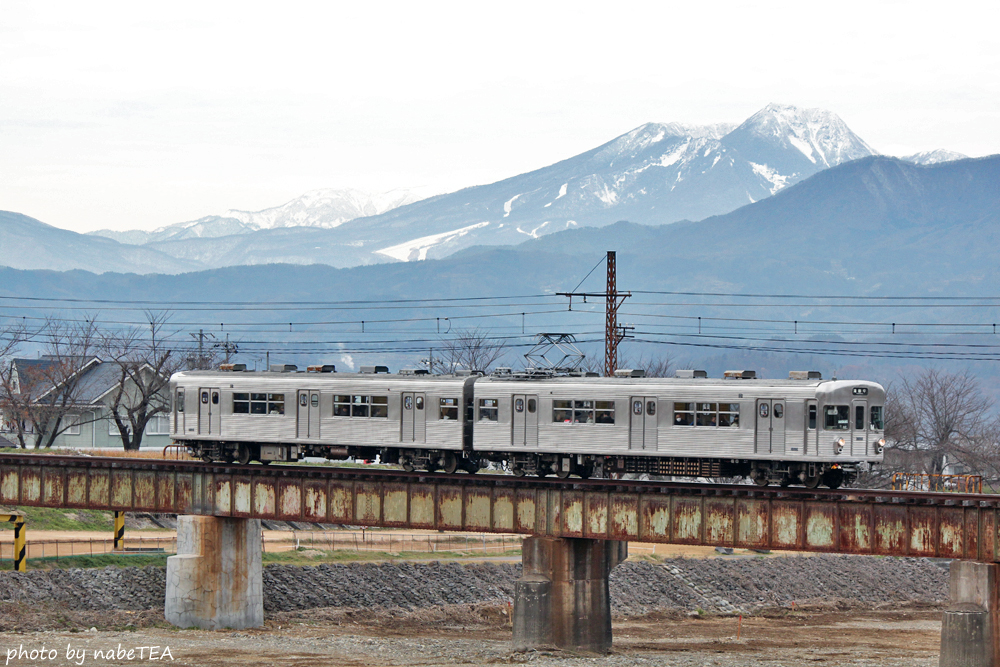須坂駅での撮影会・物販が行われている合間に先回りして、まずは定番北須坂~小布施間の鉄橋で一枚。