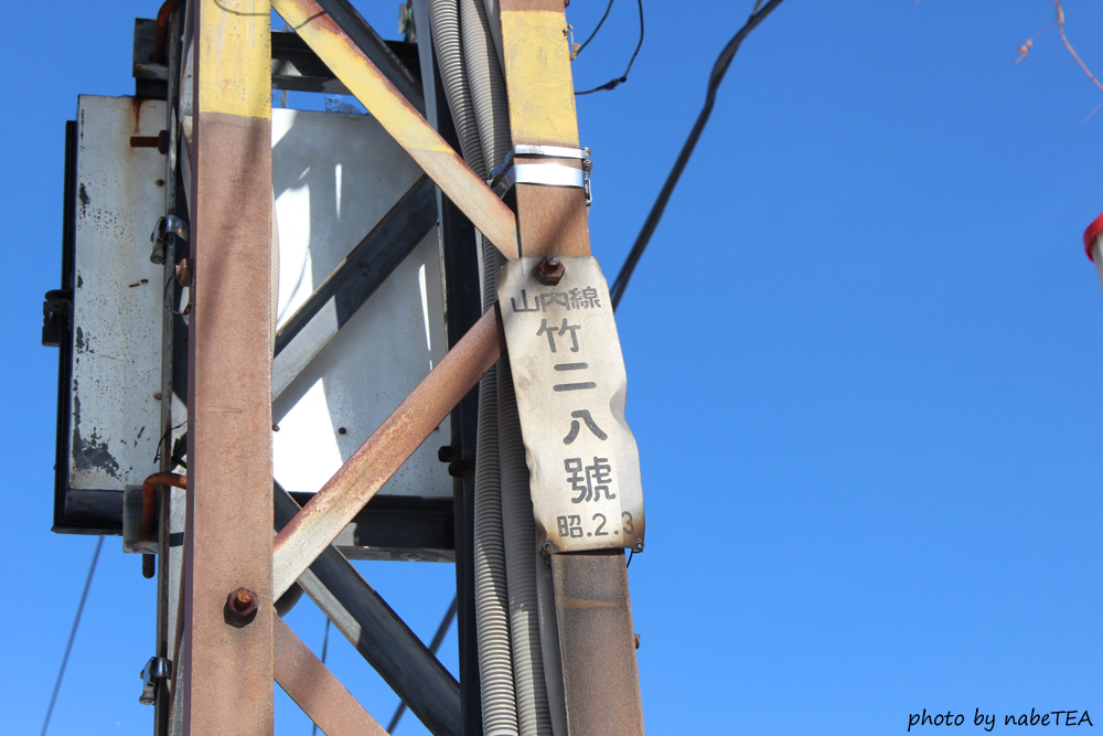 信州中野~湯田中の開業が昭和2年ですから、開業当初からの架線柱のようです。