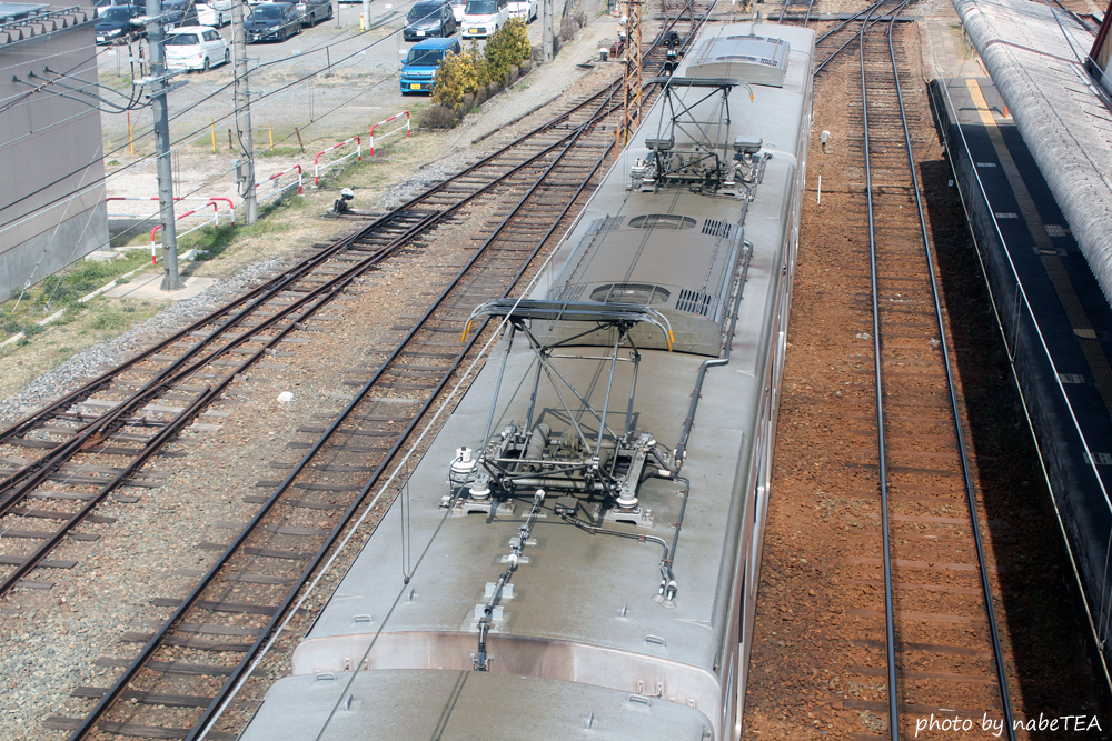 ▲須坂駅跨線橋よりM5編成屋根上を観察(長野方に配管が増えてる気がする…