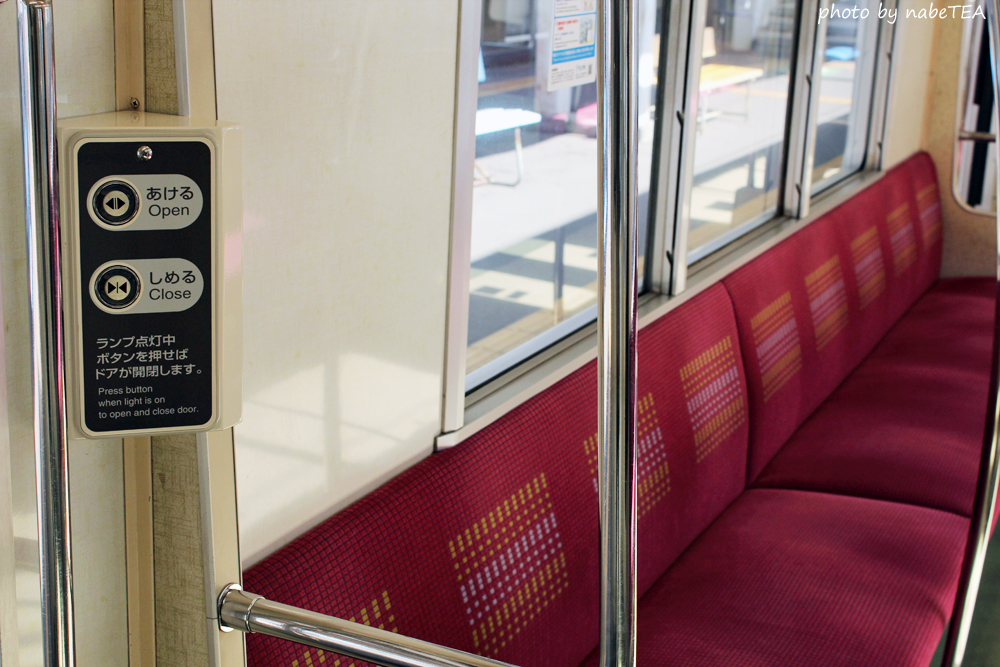 ▲メトロ感の残る車内の雰囲気を壊さないドアボタン