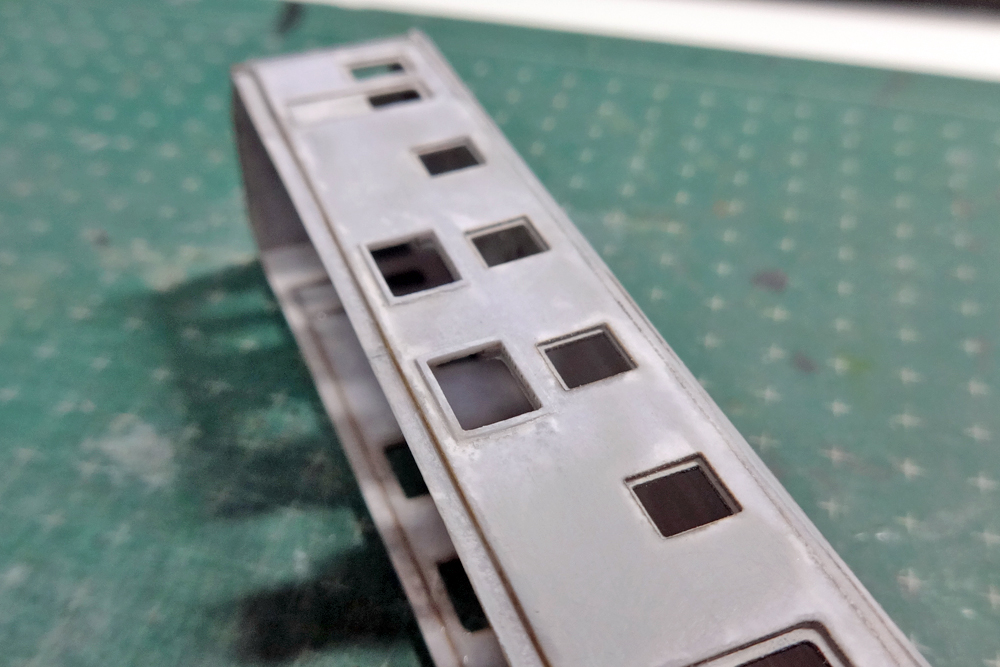 レーザーカットで縦スリットが再現されているのですが、これがヤスり作業中に瞬着で埋まってしまったり、削り粉が詰まってしまったり。