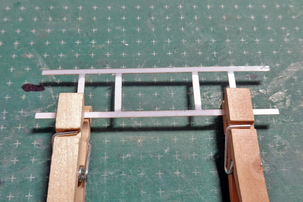 ハシゴは単品の状態で瞬着を浸透させて固形化してから接着すると作業しやすいですね。